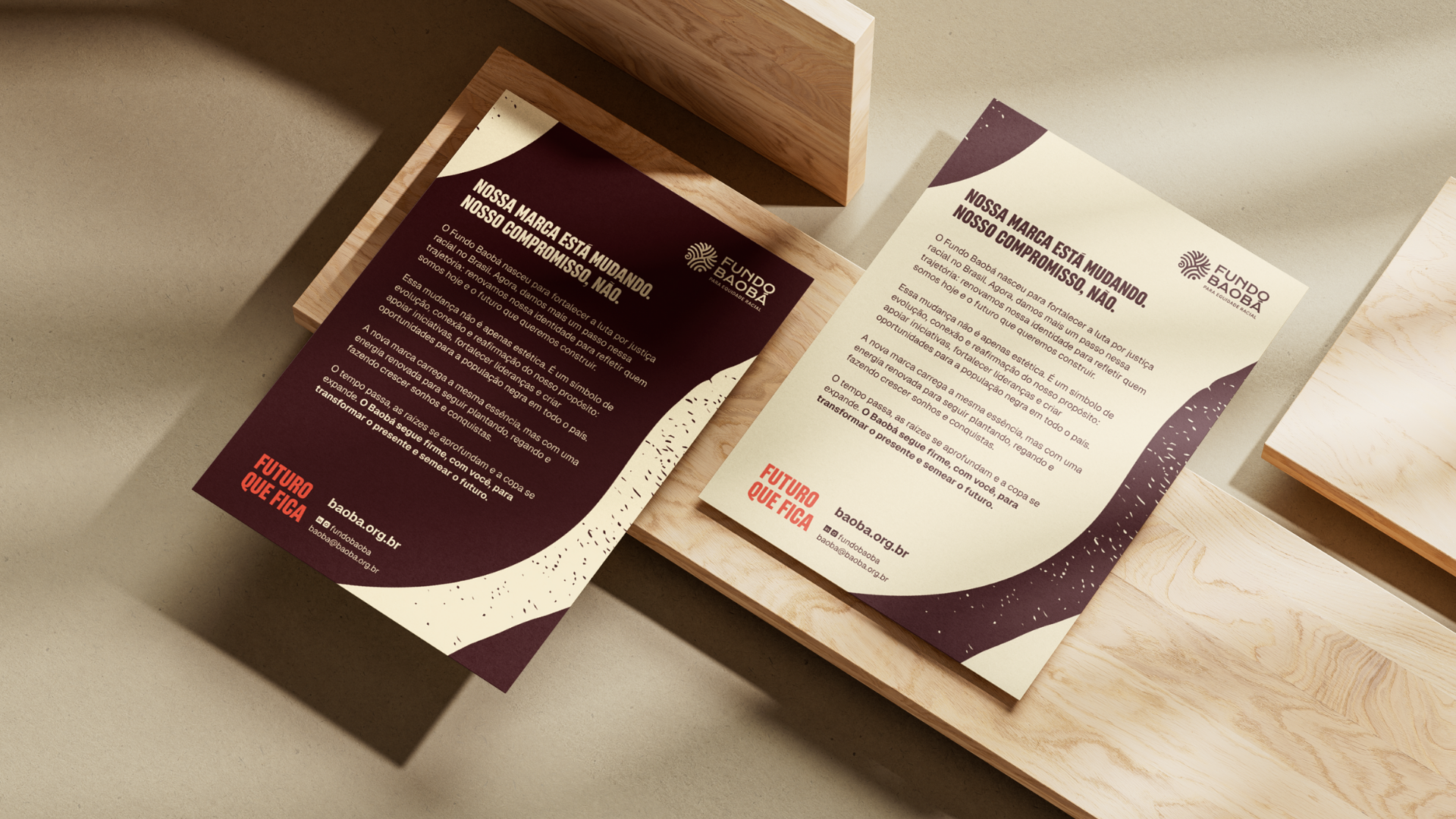 A brand driven by purpose and rooted in heritage must express this clearly through its positioning. In Baobá’s case, this positioning carries the strength of ancestry and the lived history of the Black Brazilian population. It is shaped by a sense of time in which the past is honored through memory, the present is affirmed through action, and the future is built every day on a shared vision of equality.