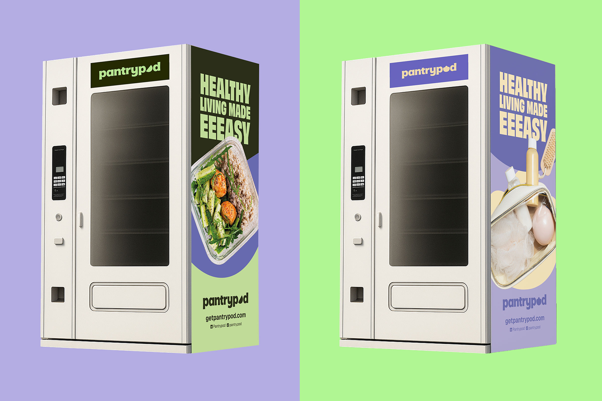 The project aims to communicate how PantryPod makes access to healthy food easier, faster, and more rewarding. The visual identity is designed to reflect the sense of youthfulness and innovation present in every detail of the experience, reinforcing the idea that eating well can be simple, practical, and enjoyable.