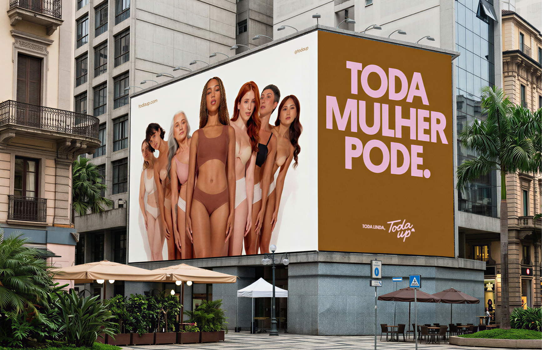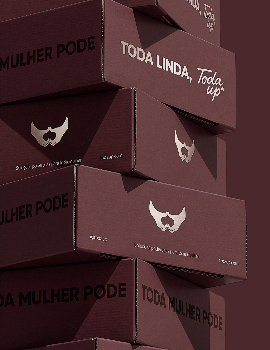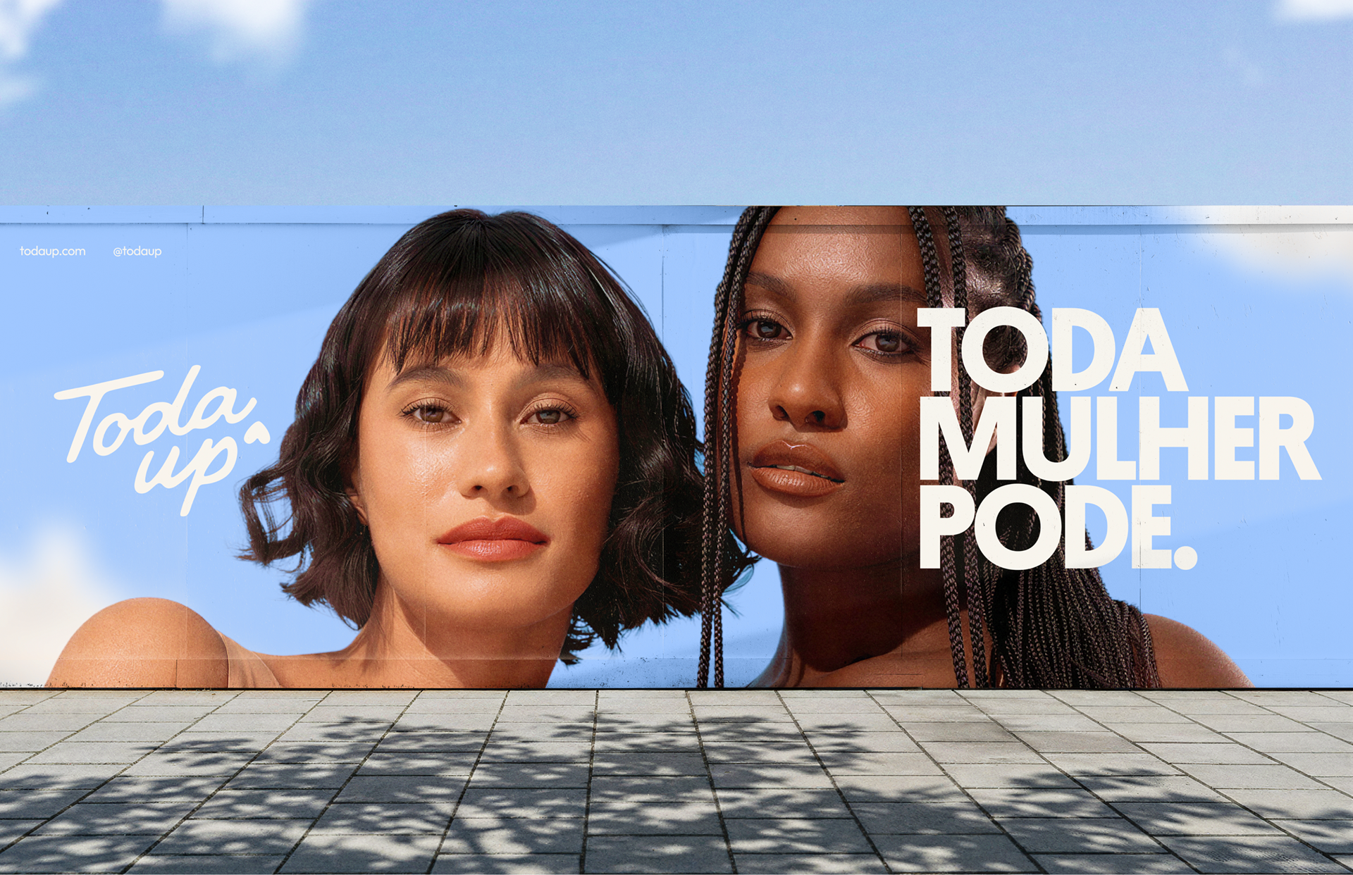A Toda Up entrega liberdade de escolha. Remove fricções do cotidiano. Se torna um ecossistema de soluções que respeita a diversidade do corpo real. A identidade visual reforça esse posicionamento por meio de um sistema expressivo e versátil. A paleta amplia o território e representa pluralidade. A tipografia equilibra impacto e clareza. A direção imagética prioriza autenticidade, uso real e conexão entre mulheres.