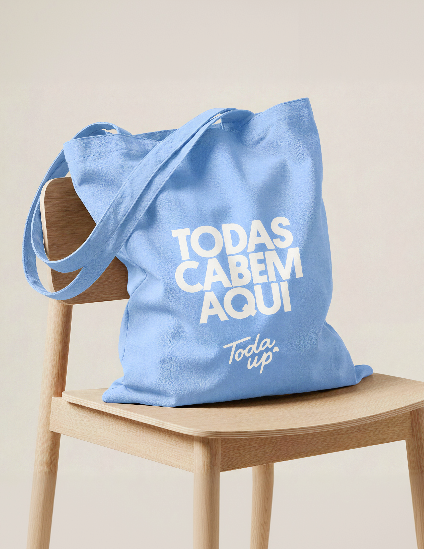 A evolução começou no nome: Toda Up. "Toda" traz pluralidade e pertencimento. "Up" mantém o legado de elevação e impulso. Esse direcionamento se traduz em um posicionamento que valoriza a força de marca já construída e a deixa pronta para o futuro.